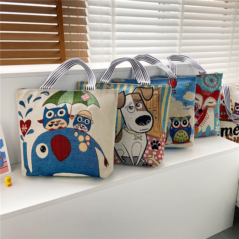 Ins布袋学生手提げキャンバスバッグ大きいサイズ可爱い収纳バッグ刺繍レトロ盲袋ブックバッグ収纳袋
