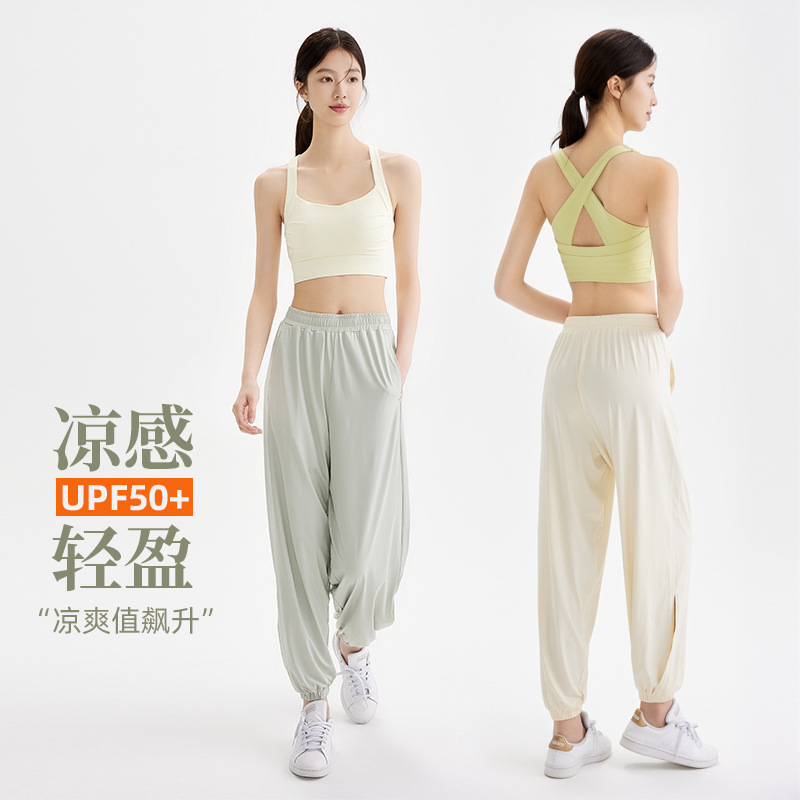 夏涼感運動修身広脚ズボン女性垂れ感が痩せている日焼け止めズボンカジュアルゆるいフィットネスヨガパンツ
