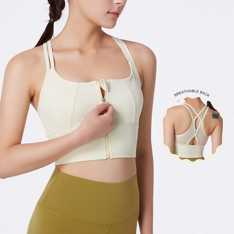 2022春のファスナー運動下着女性ヨガブラジャー防震中高強度フィットネスヨガ服上着ベスト