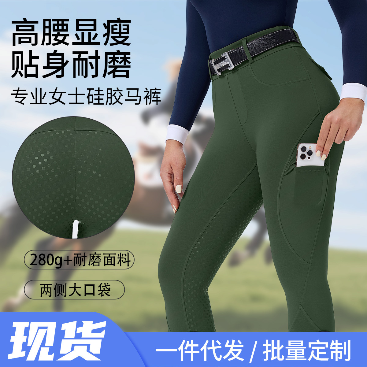 欧美跨境女士骑马裤全座硅胶防滑耐磨双侧口袋紧身高腰收腹马术裤
