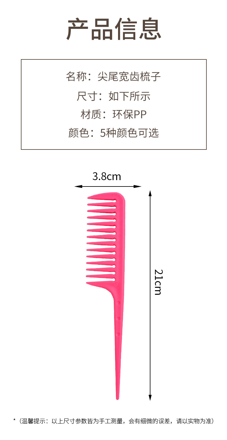 メーカーの卸売りの美髪のツールは尖った尾の広い歯の櫛の家庭用の櫛の優良品質の大きい歯の櫛の日用の櫛のカールの櫛を櫛にします。