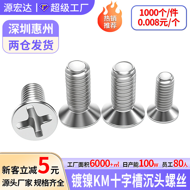 ニッケルメッキkm十字溝沈頭機歯ねじM2.5M3-M6平頭機糸沈機電子マイクロねじ