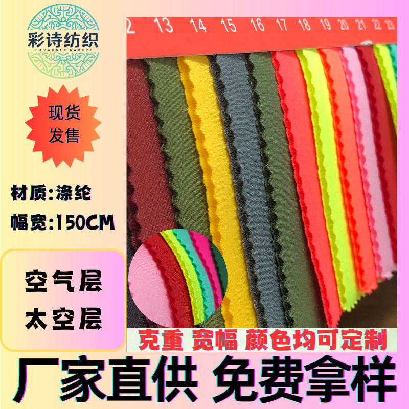现货涤氨夹丝太空层弹力双面布高弹空气层加厚针织复合健康布