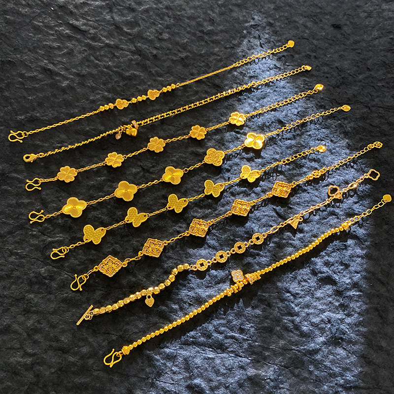 金店同款新中式沙金镭射幸运花四叶草手链女时尚风高级感精致手饰