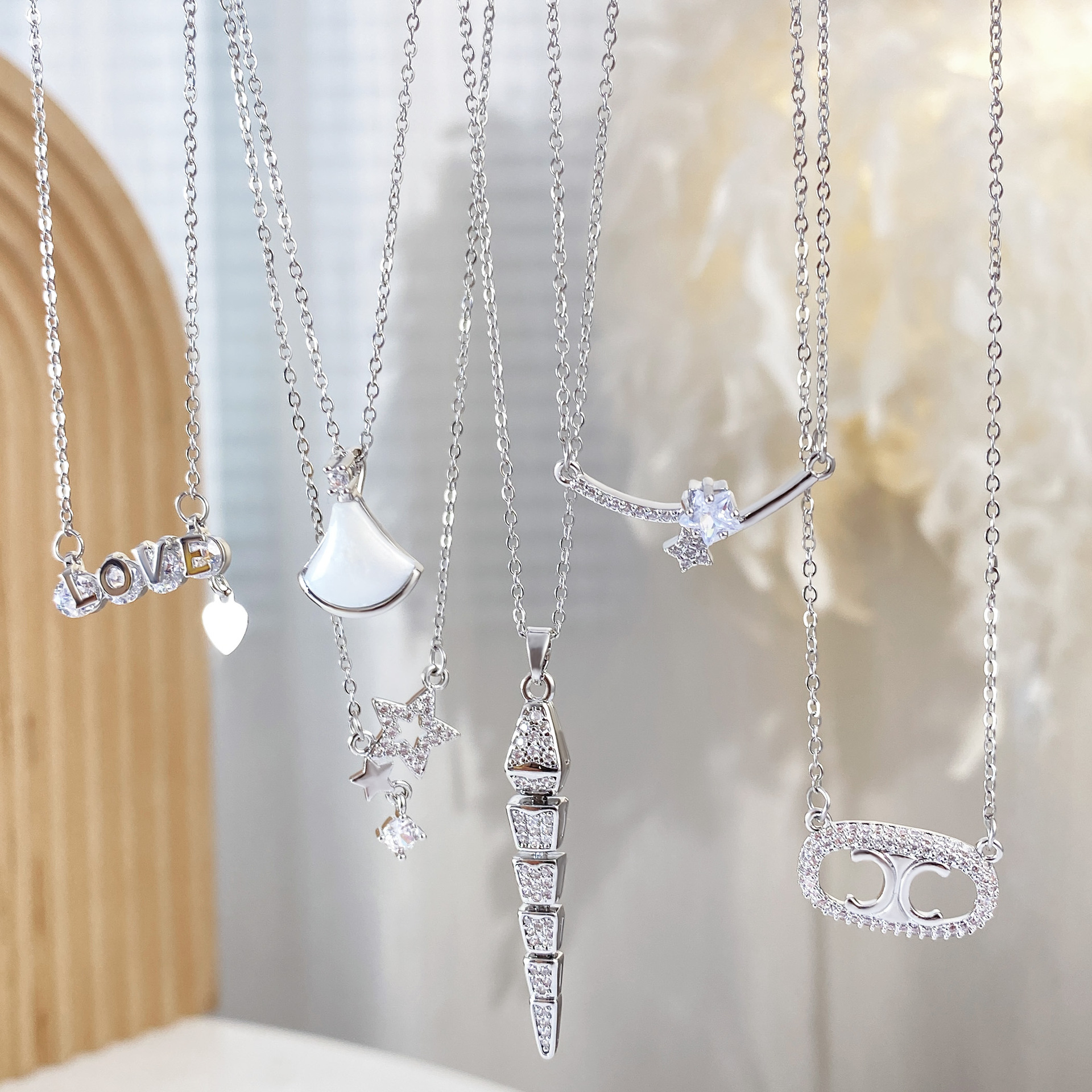在庫あり、売れ筋商品、シンプルで爽やかなマイクロインレイジルコニアLOVE英語ネックレス、ファッショナブルで精巧なニッチデザイン、万能なスタイル
