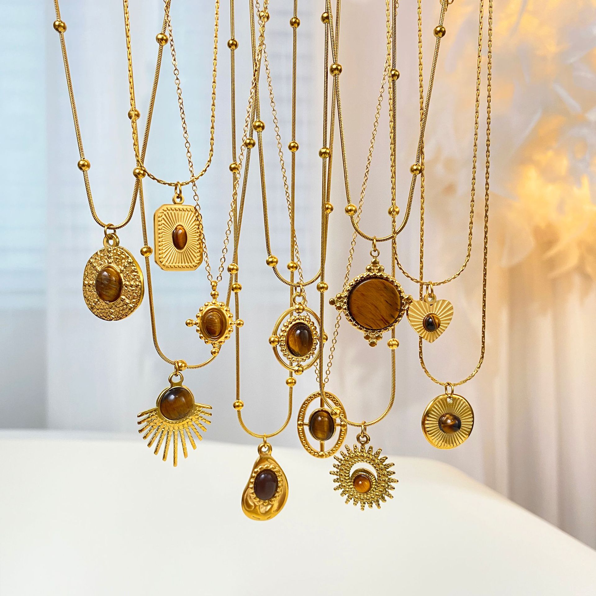 中古風高級感軽豪華天然虎眼石ネックレス美ラード茶色系ネックレス港風復古百合