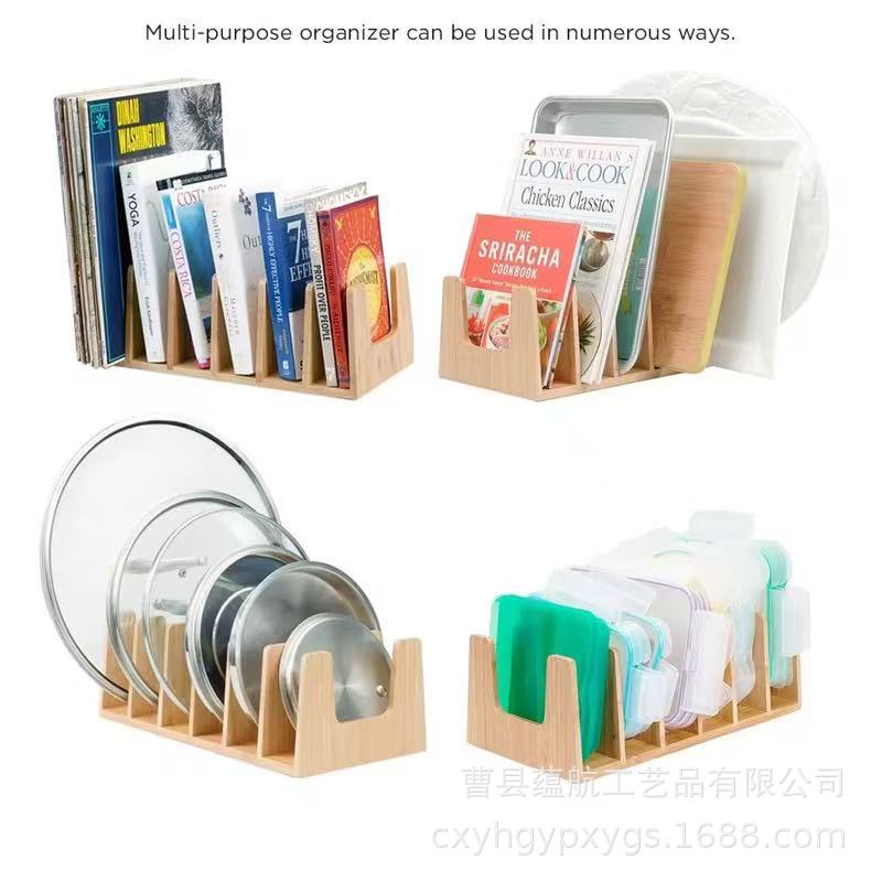 シンプルな家庭用キッチンボウル、皿、鍋蓋収納ラック無垢材デスクトップブック収納ラックブックスタンド