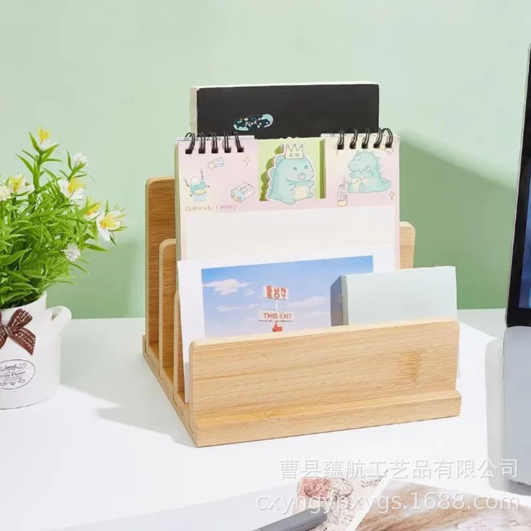 竹と木の収納と整理ラック、シンプルなデスクフォルダー、マルチグリッド分類、学生文具情報レターラック