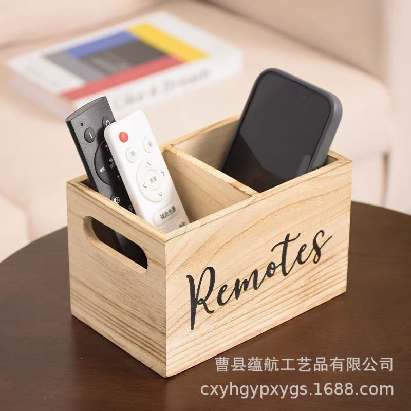 木製ダブルスロット収納ボックスデスクトップリモコン収納ボックス学生文具ボックス携帯電話ホルダー無垢材収納ボックス