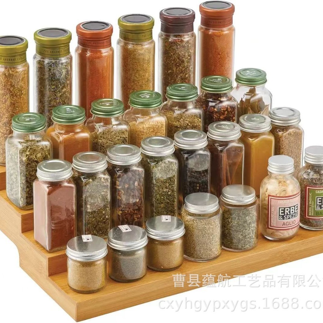竹スパイス食品収納ラックキッチンキャビネット木製スパイス収納ラック階段状4層カウンターディスプレイラック