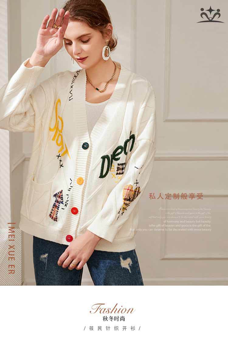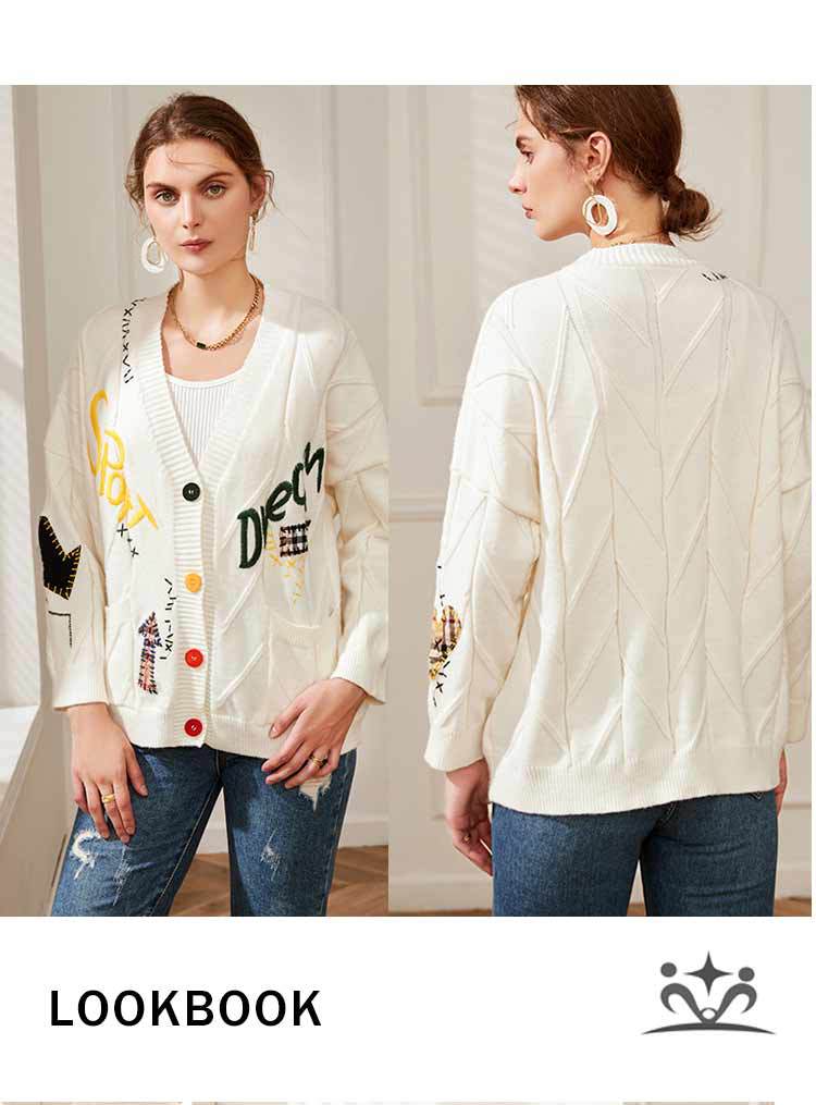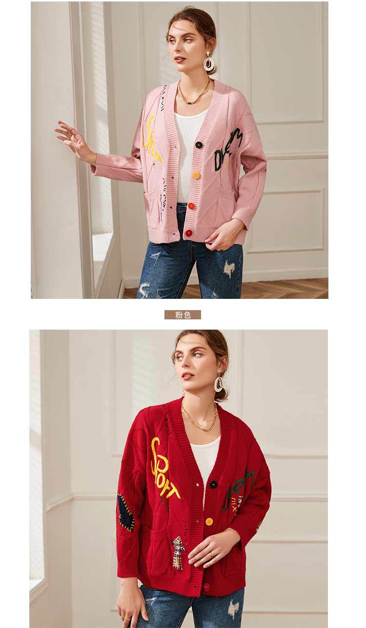 2023秋冬の新型クロスボーダーアマゾンの新商品のカーディガンのセーターのコートのゆったりしたアルファベットの刺繍のニットの卸売り