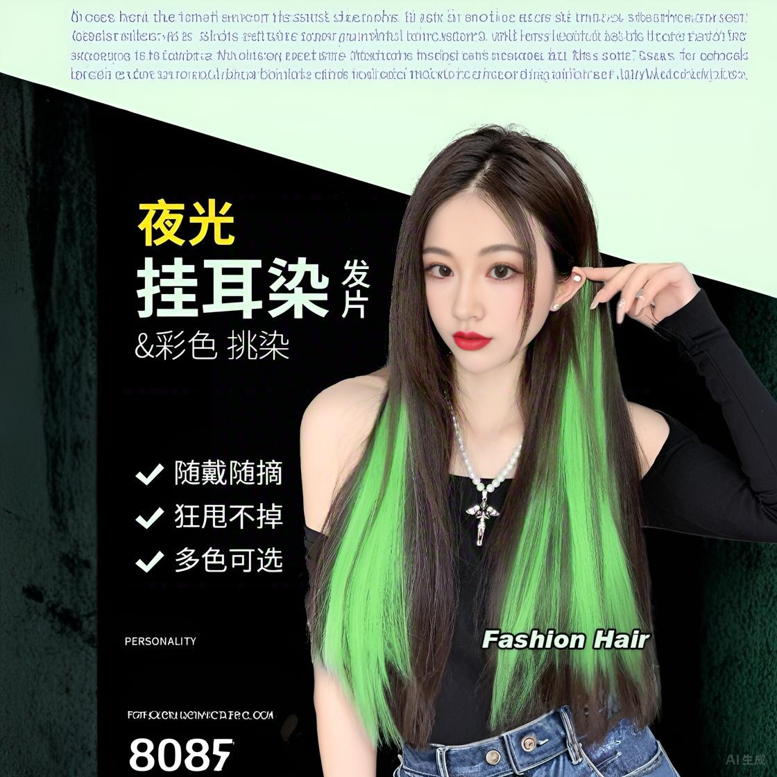 一片式欧美跨境夜光假发片彩色长直挂耳染夜光假发丝接发片卡子发