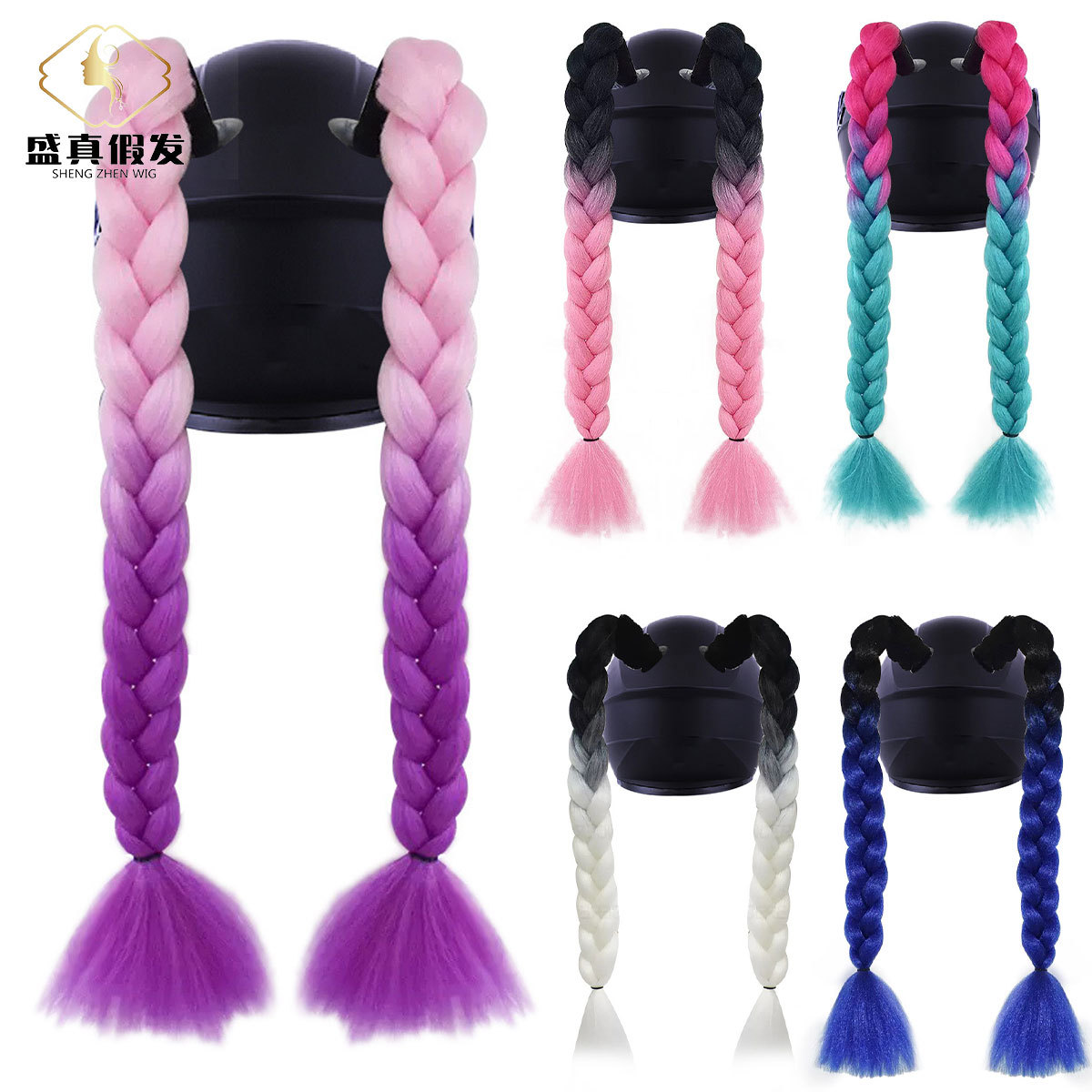 新しいヘルメットの流行のかつらのポニーテールのかわいい特色は取り外し可能な吸盤の汚れたお下げのグラデーション色のツインテールです。