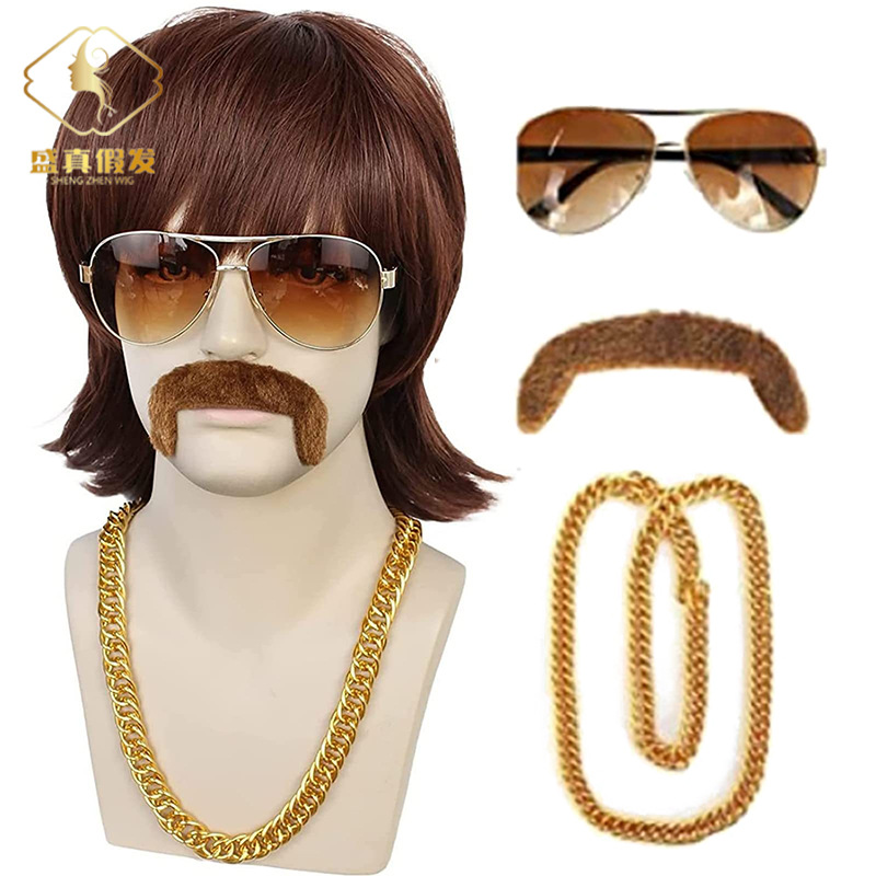 欧米系ファッションメンズ茶色タコかつらロックメンズ60S Rocker Wig高温糸かつらカバー
