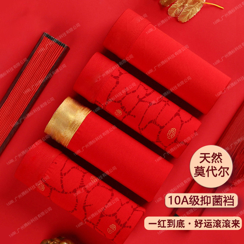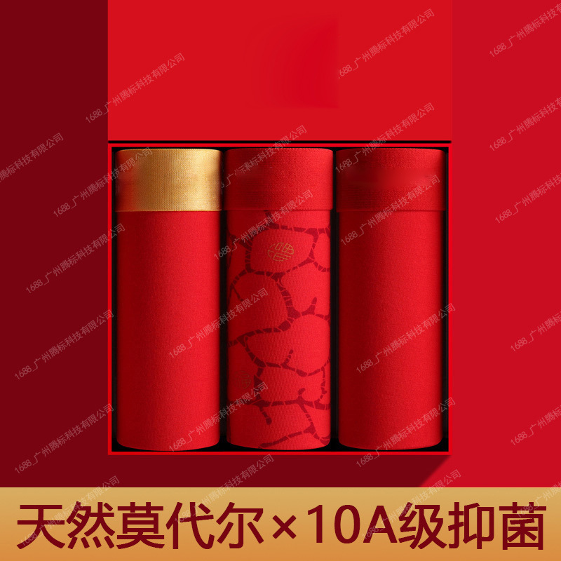 男士内裤本命年大红色四角裤莫代尔抑菌喜庆短裤结婚透气平角裤头