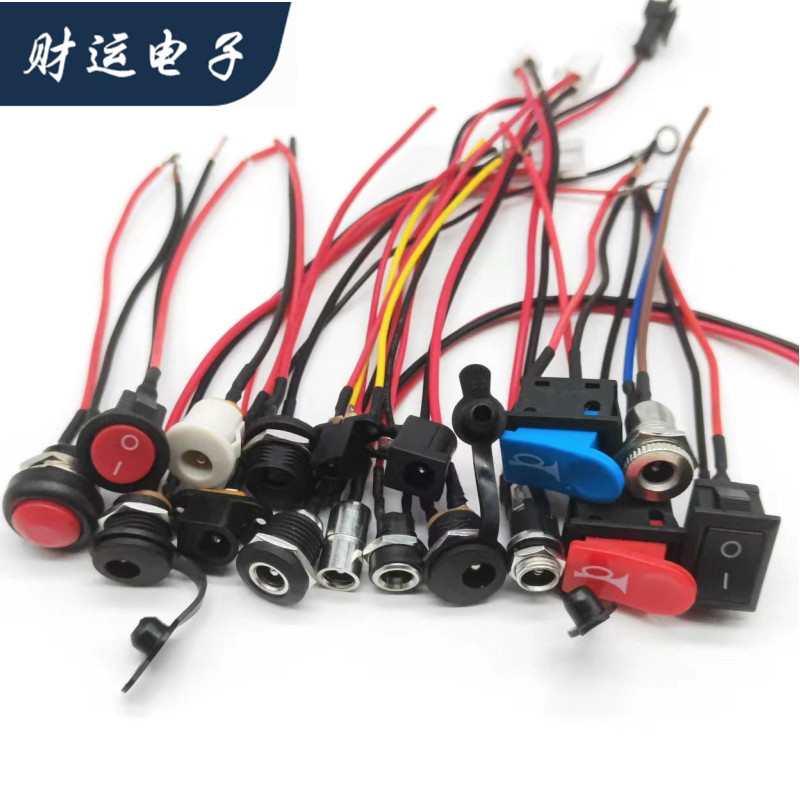 丸穴ネジナット付電源ソケットDC-022Mプラスハーネス溶接式二脚電源母座dcソケット