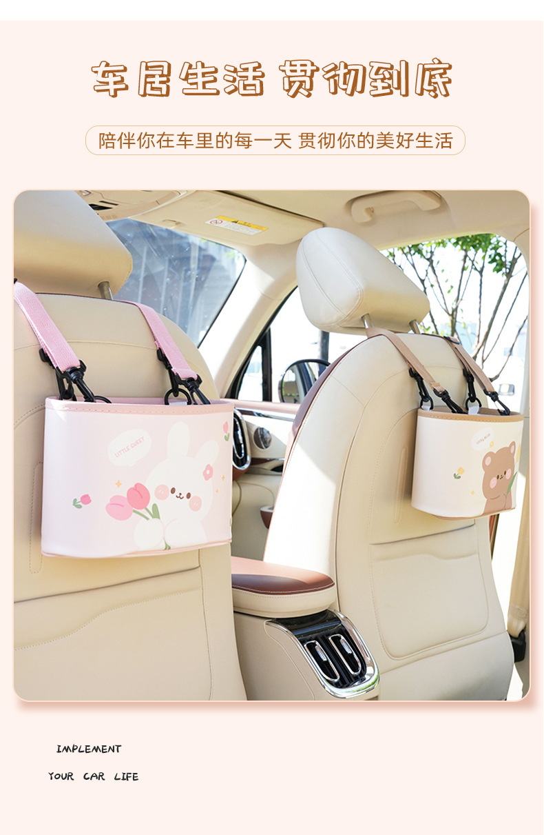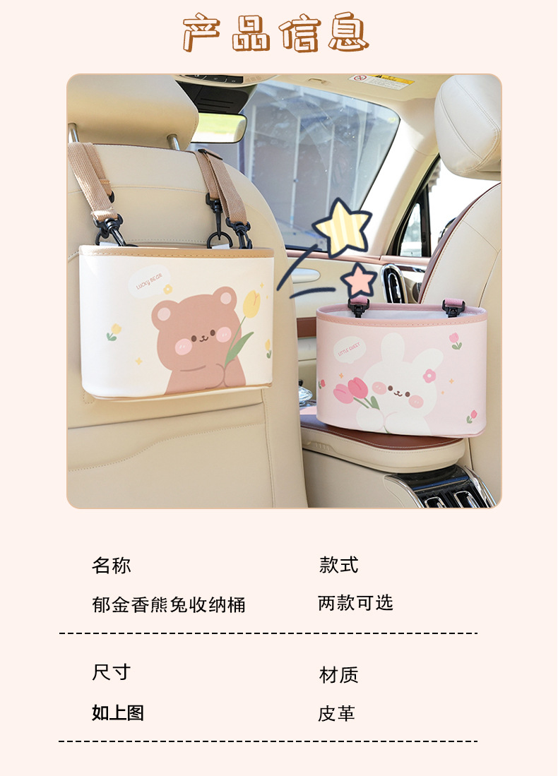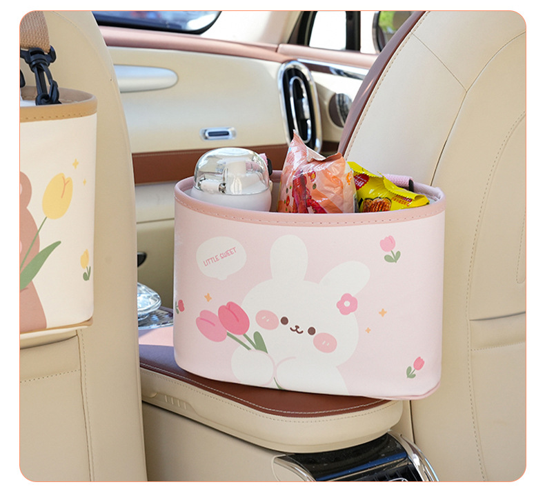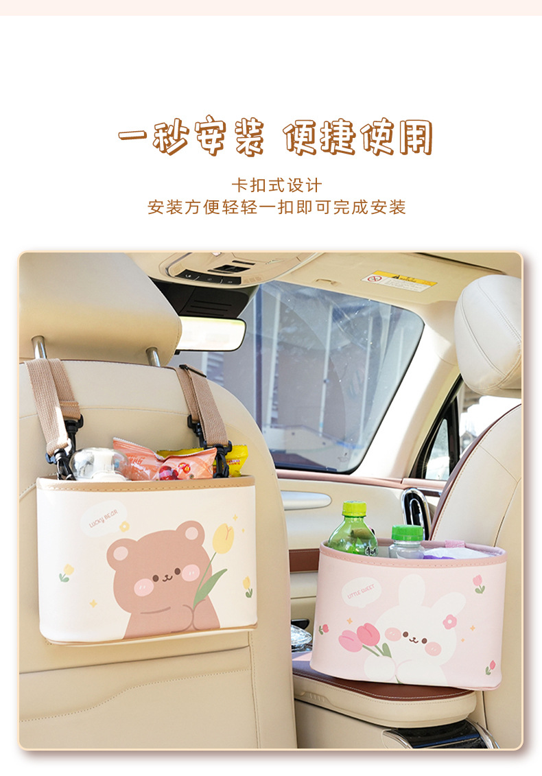 カーシート后背収纳袋可爱いチューリップくまうさぎ車載置物掛け袋多机能食卓置物ケース