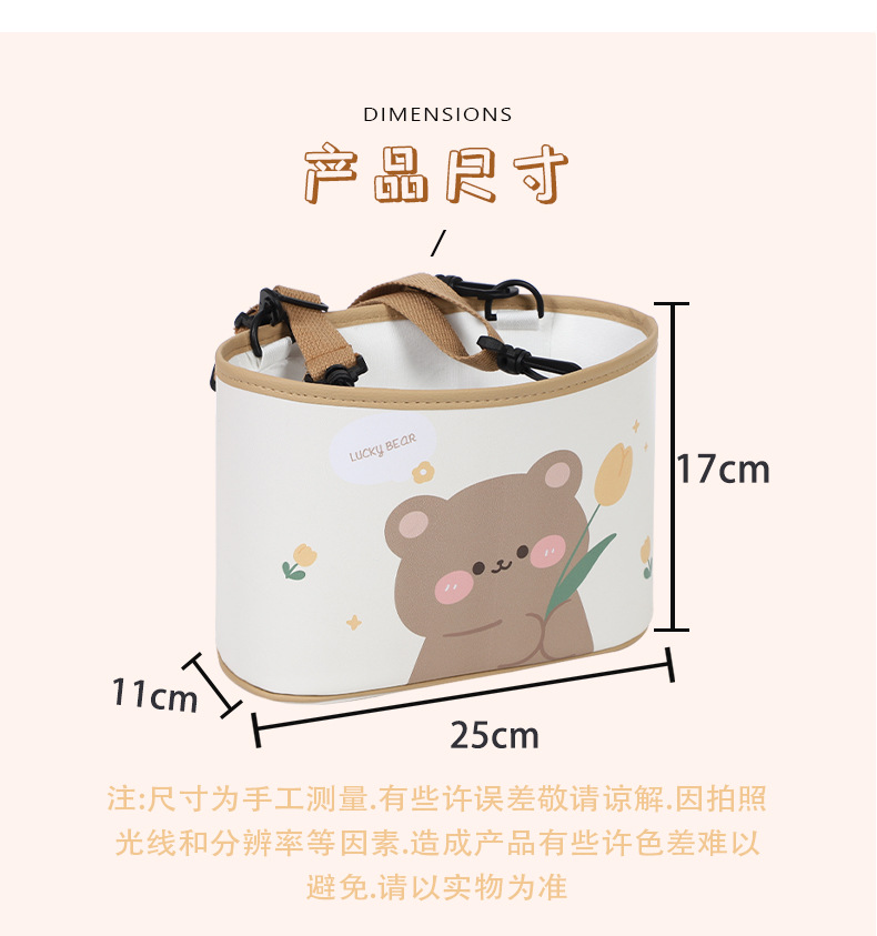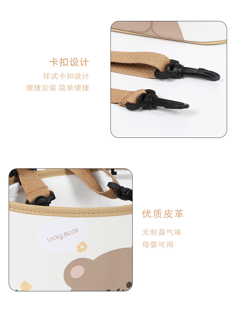漫画熊車載ゴミ箱革プリント自動車収納収納バケツ吊り式多機能車載収納ボックス