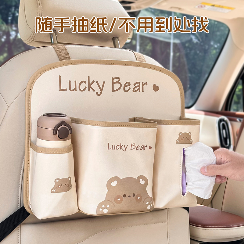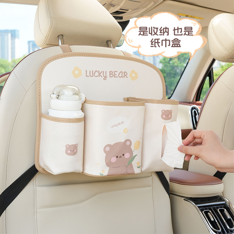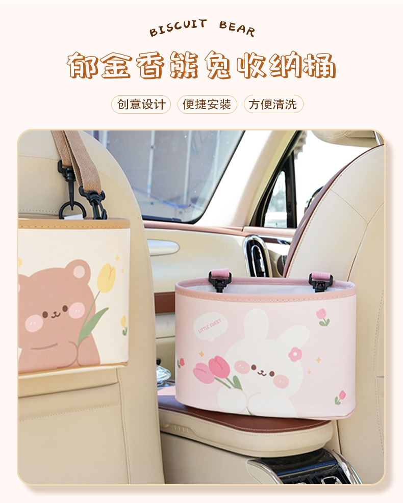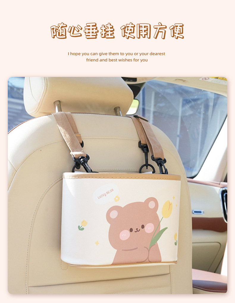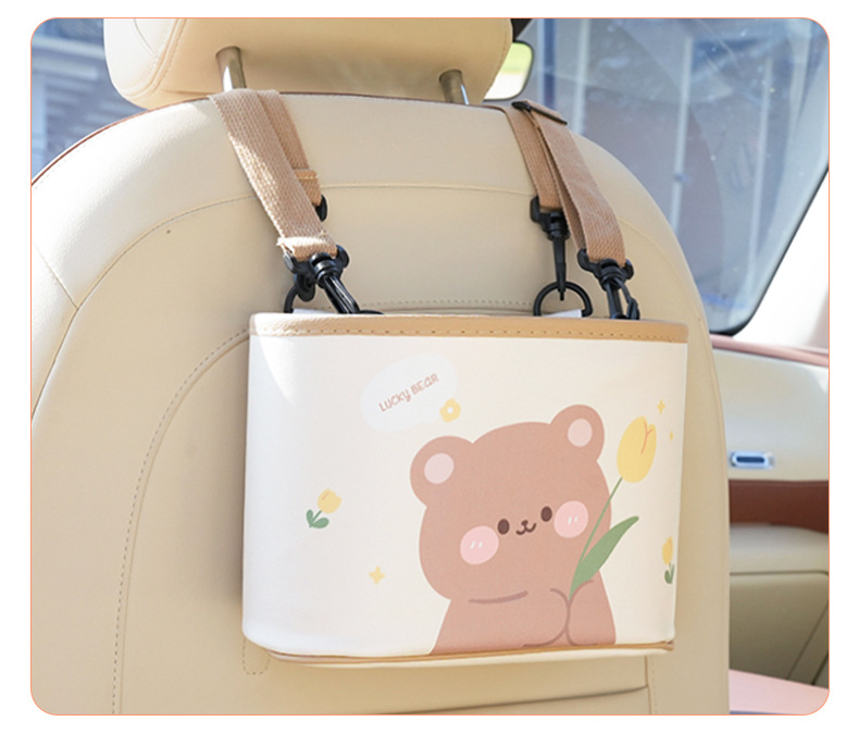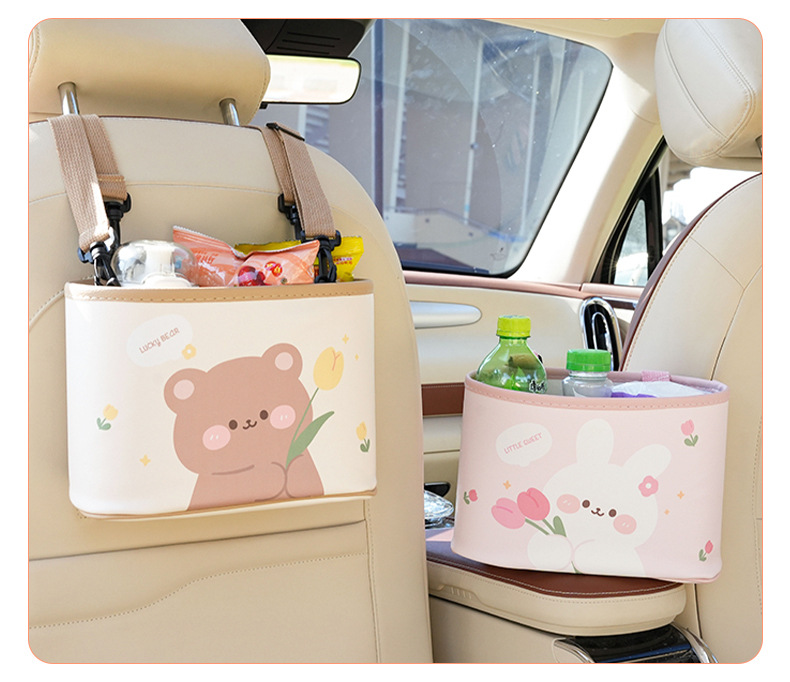 車載ゴミ箱 漫画風チューリップ クマ 背もたれ収納ボックス 可愛い多機能車用収納ボックス