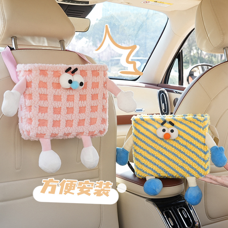 泡芙車載ティッシュボックス自動車手すり箱サンシェードシート吊り式ティッシュボックスかわいい車用ティッシュボックス