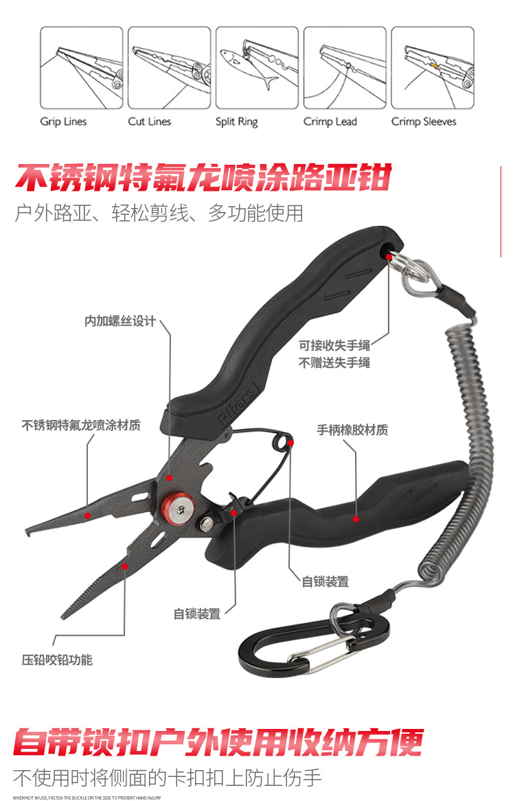 新商品の現物卸売りテフロンステンレス路亜鉗子路亜鉗子多機能鉗子新商品コントロール魚器