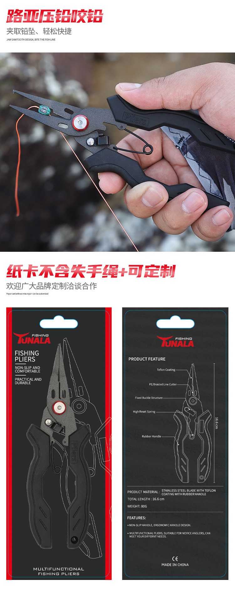 Tunalaステンレス多機能小口路亜鉗子微物防錆テフロン釣り鉗子海釣り漁具現物
