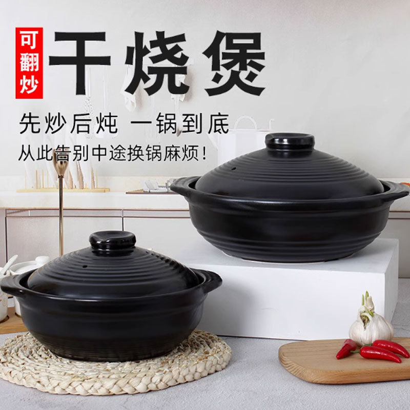 砂锅家用炖锅商用大容量火锅煲汤陶瓷锅炖菜两用干烧耐热高温双耳