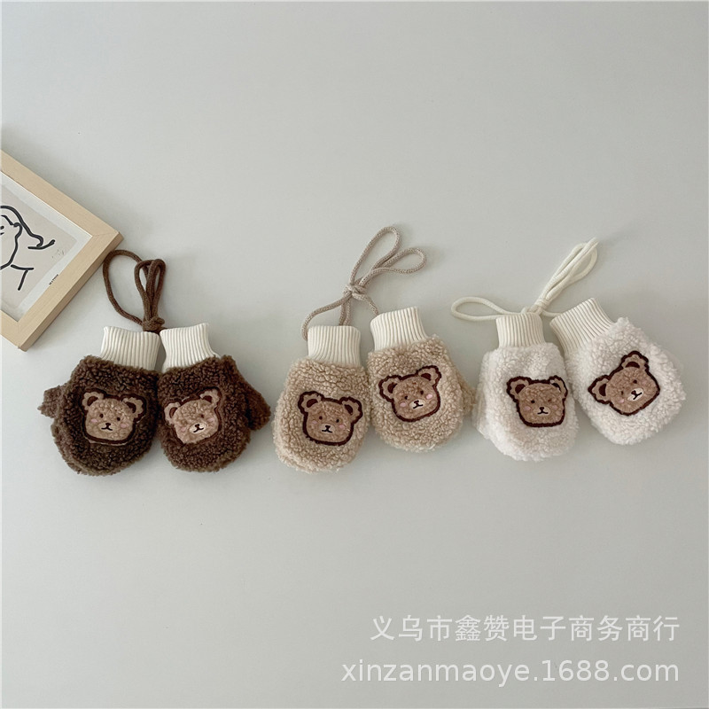 韓国の赤ちゃんの手袋の冬のins韓国版の熊の男性のベルベットの保温の子供は厚いです。