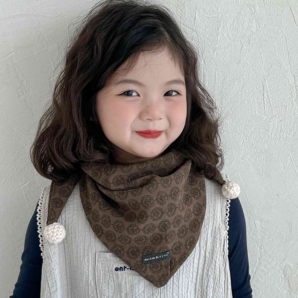 复古色儿童围巾秋冬季围脖韩系男童女宝宝三角巾双层防风保暖围脖