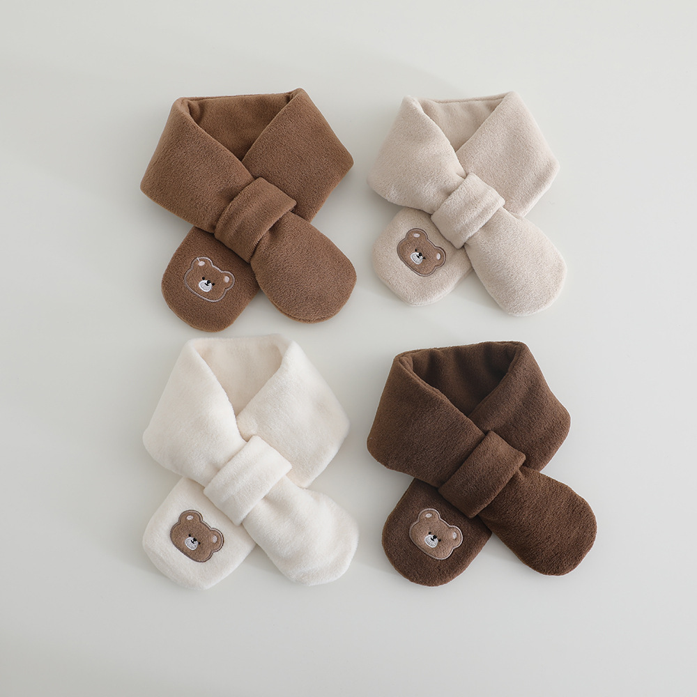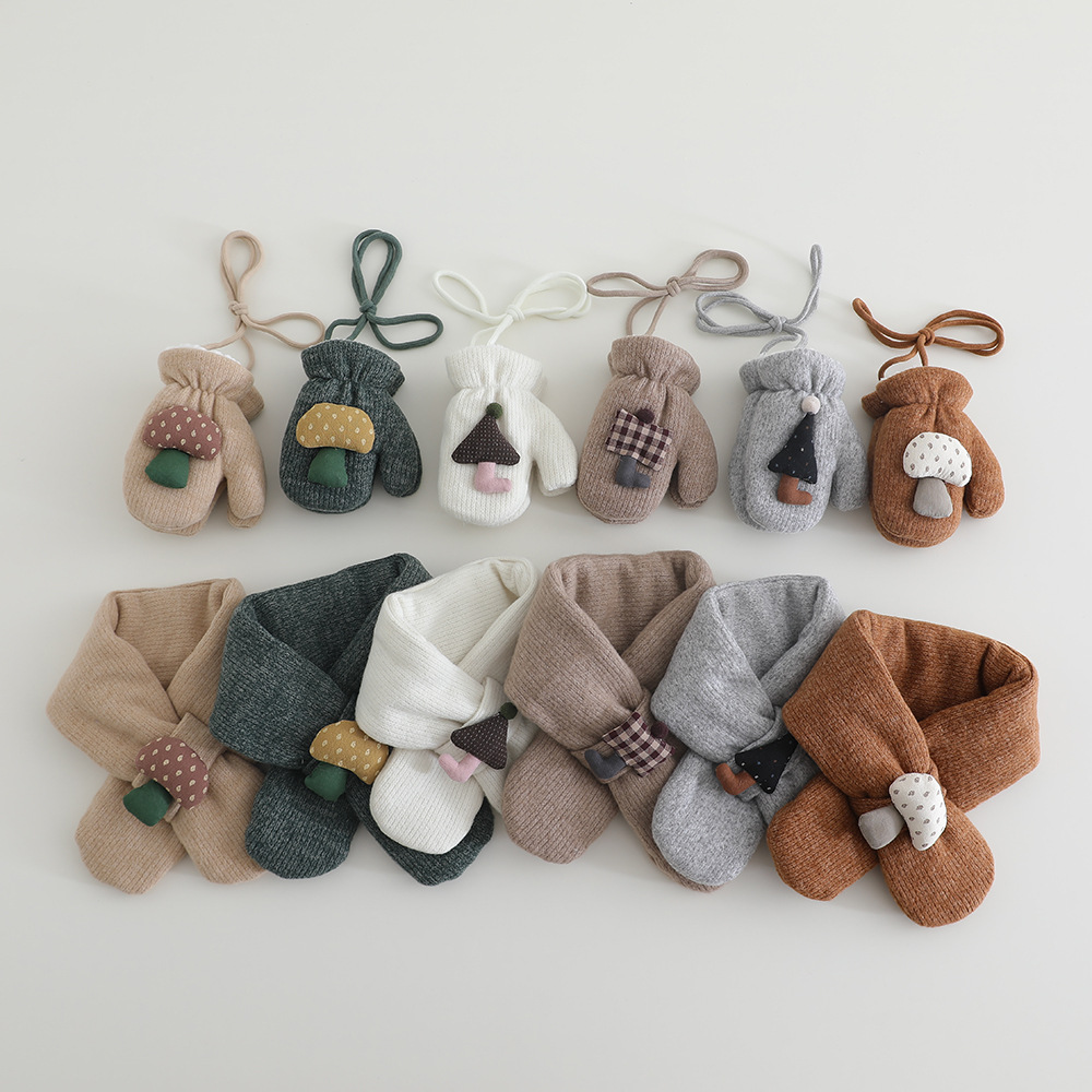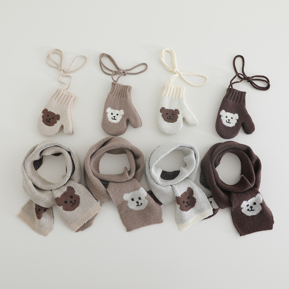 Ins韓国純色熊子供マフラーセット秋冬男の子と女の子の赤ちゃん保温手袋二点セット
