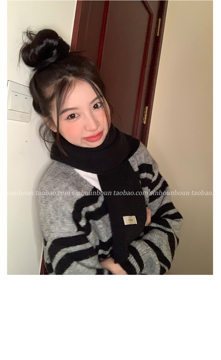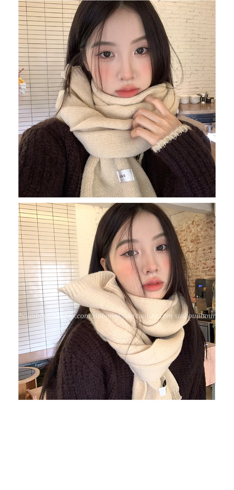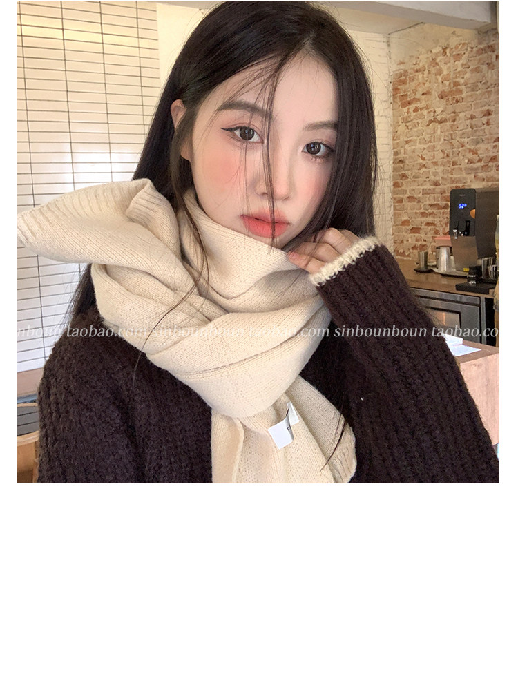 マフラー女性秋冬日韓版百合学生冬ニット毛糸純色少さんは保温マフラー男を厚くした