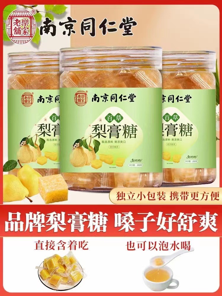 南京同仁堂200グラム/缶開蓋即食ネット赤同項清涼爽やかな手作り新鮮梨搾汁梨膏糖