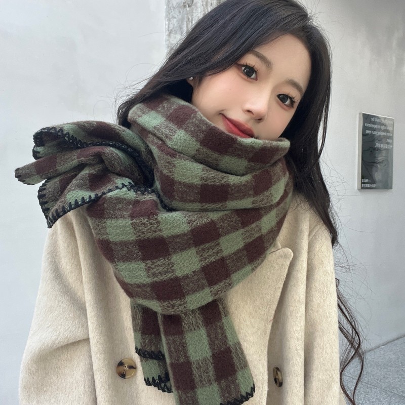 レトロな格子のマフラーの女性の雰囲気感秋の冬に韓国系の高級感を厚くします。