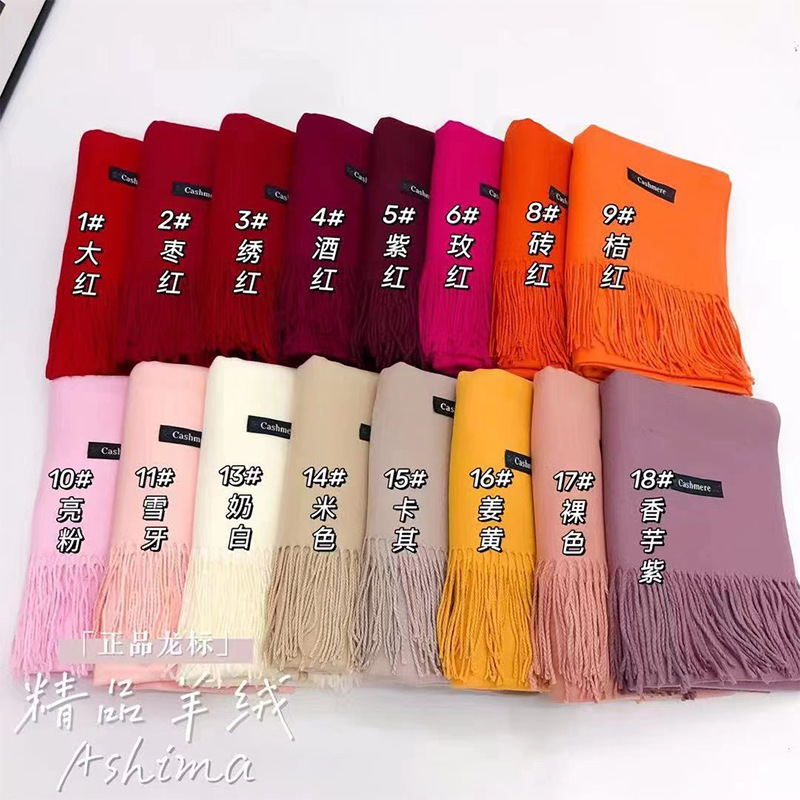 無地模造カシミヤスカーフ女性のための冬のハイエンドショール年次パーティーギフト単色刺繍ロゴ暖かいスカーフ