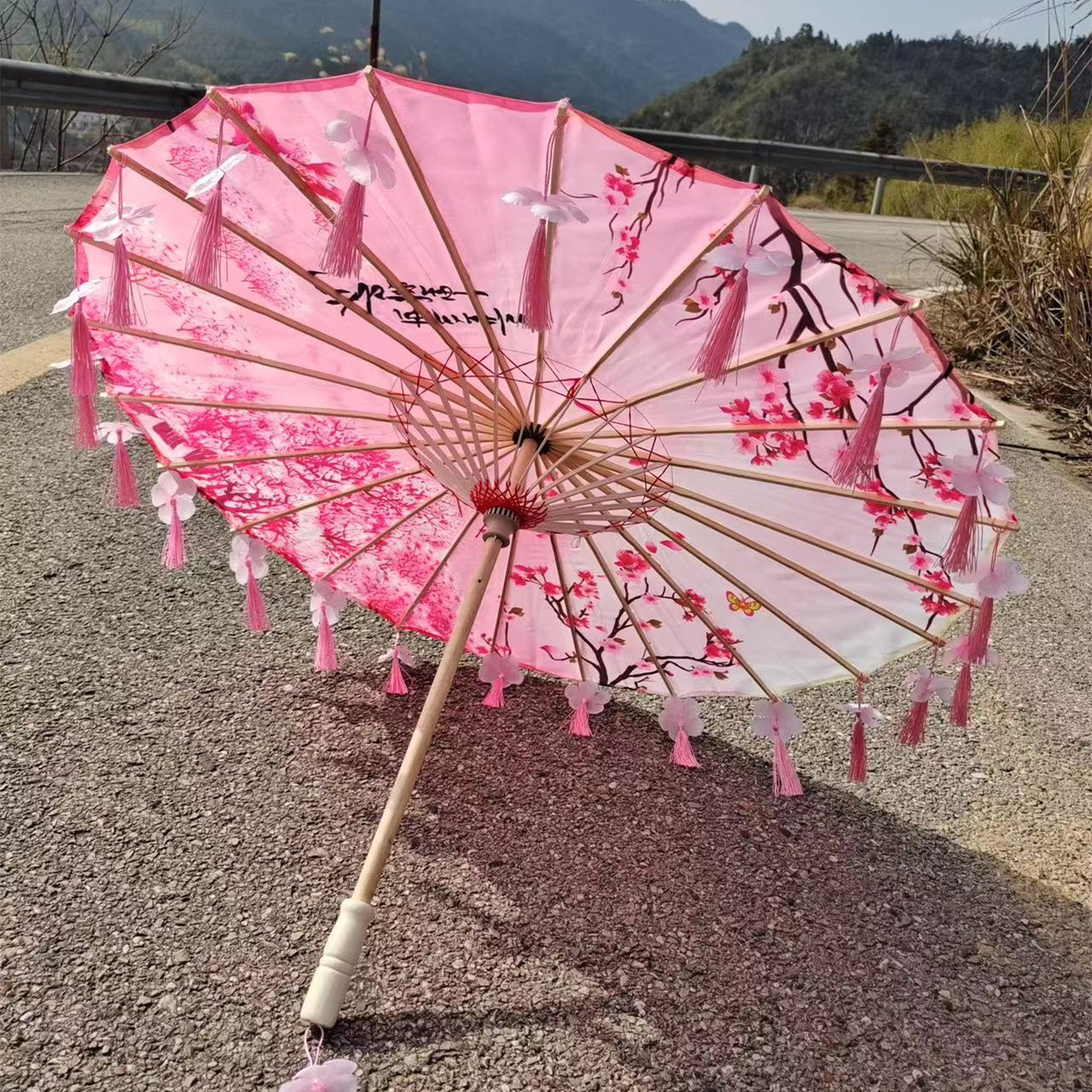 古代風美女タッセル花びら油紙傘、ネットで話題の景勝地人気商品、ランウェイショー、写真撮影用小道具傘、漢服傘、レトロ傘