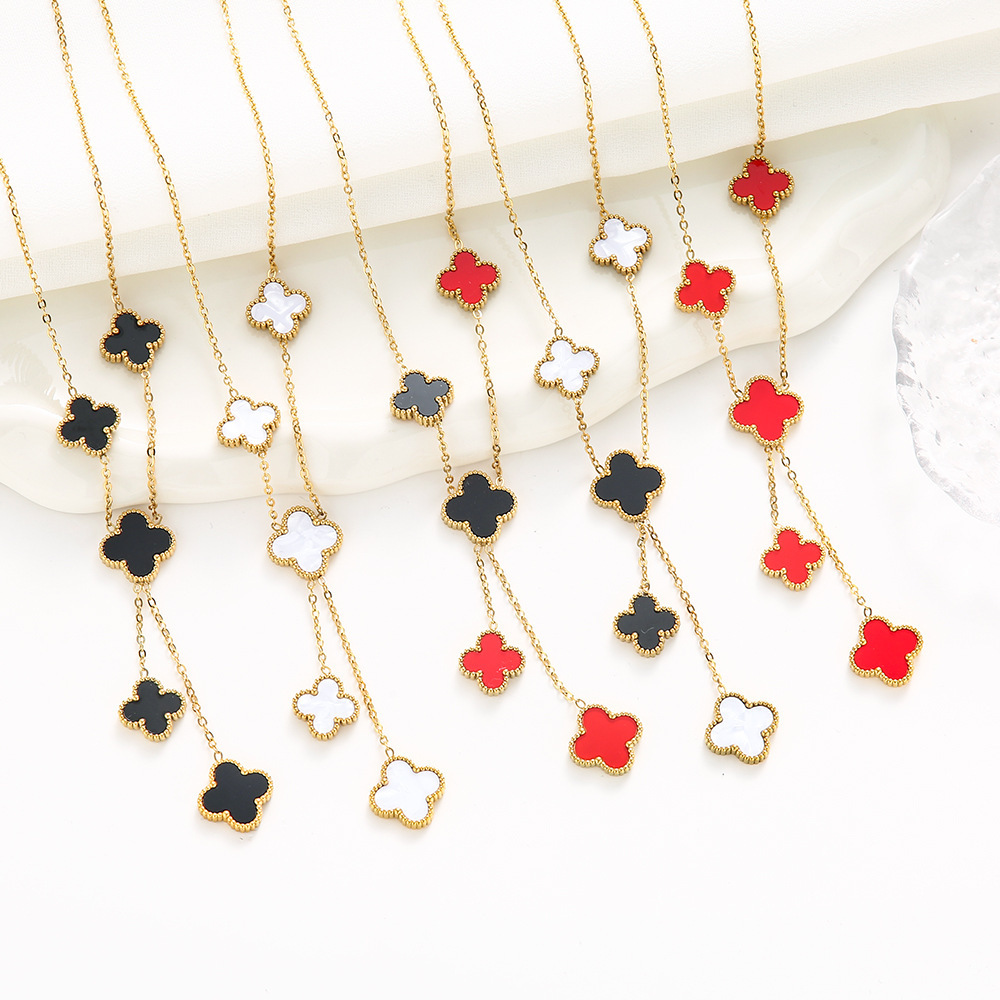 通体チタン鋼五花サイズ両面四葉草ネックレス女性鎖鎖軽贅沢流蘇ペンダント