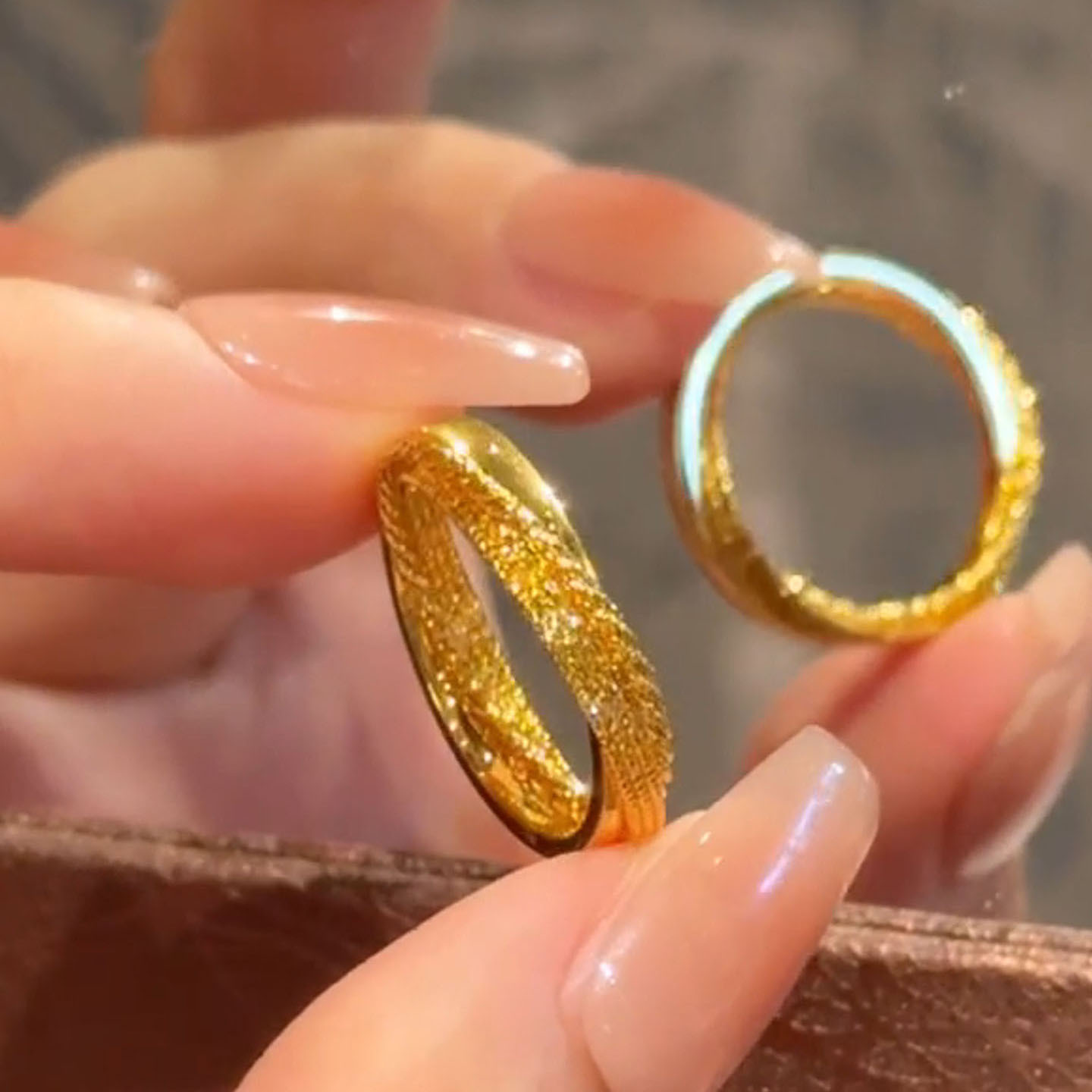 小红书爆款闪闪发光雪花细闪戒指沙金色款食指戒精致百搭一件代发