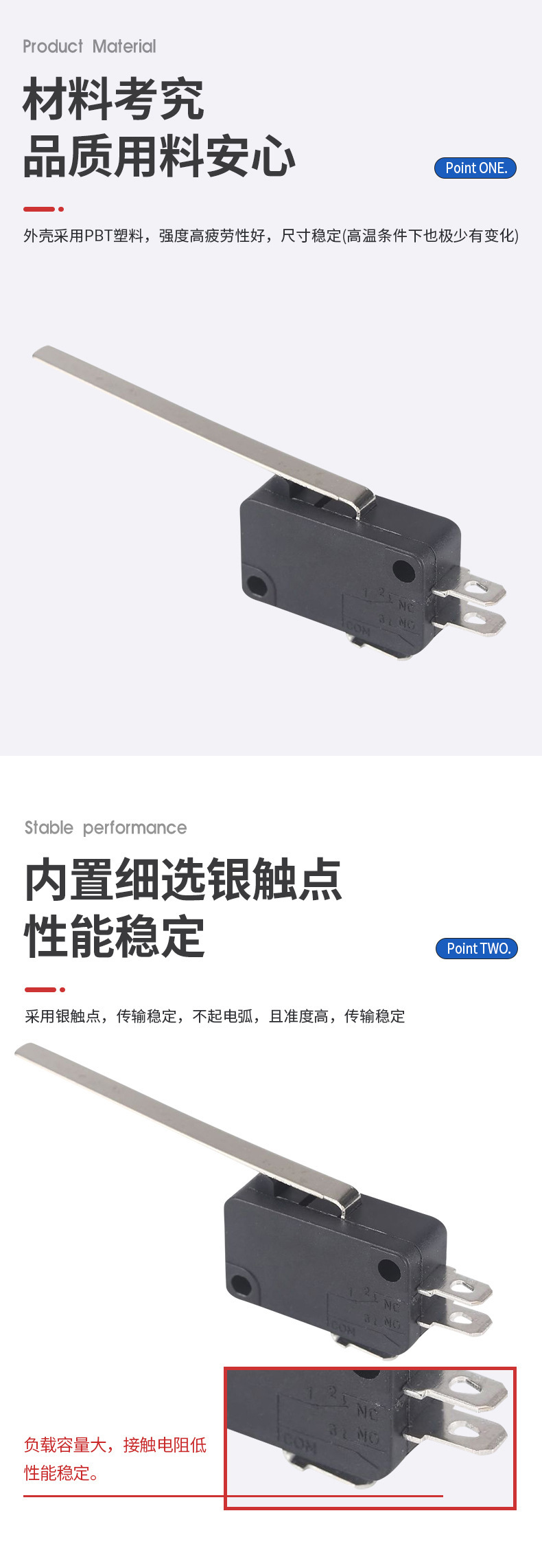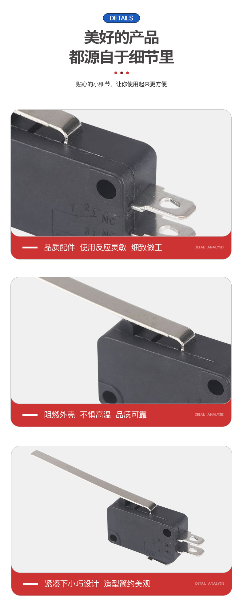 多用途微动开关三脚带柄转换限位开关封口机打包机行程开关常闭开