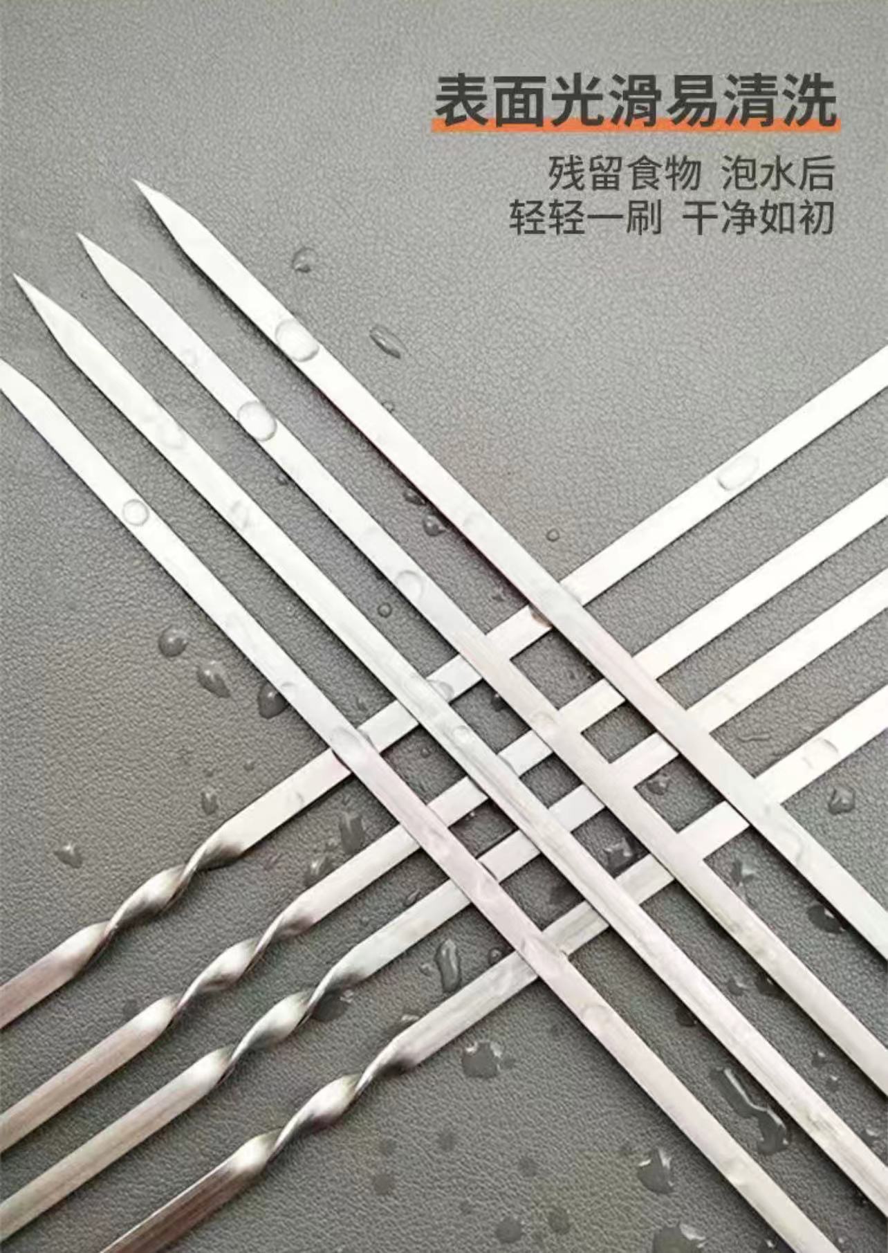 木の柄のバーベキューの署名のステンレスの羊肉の串の焼肉の串焼きの工具の鋼の平の署名の鉄の署名の部品のバーベキューの針