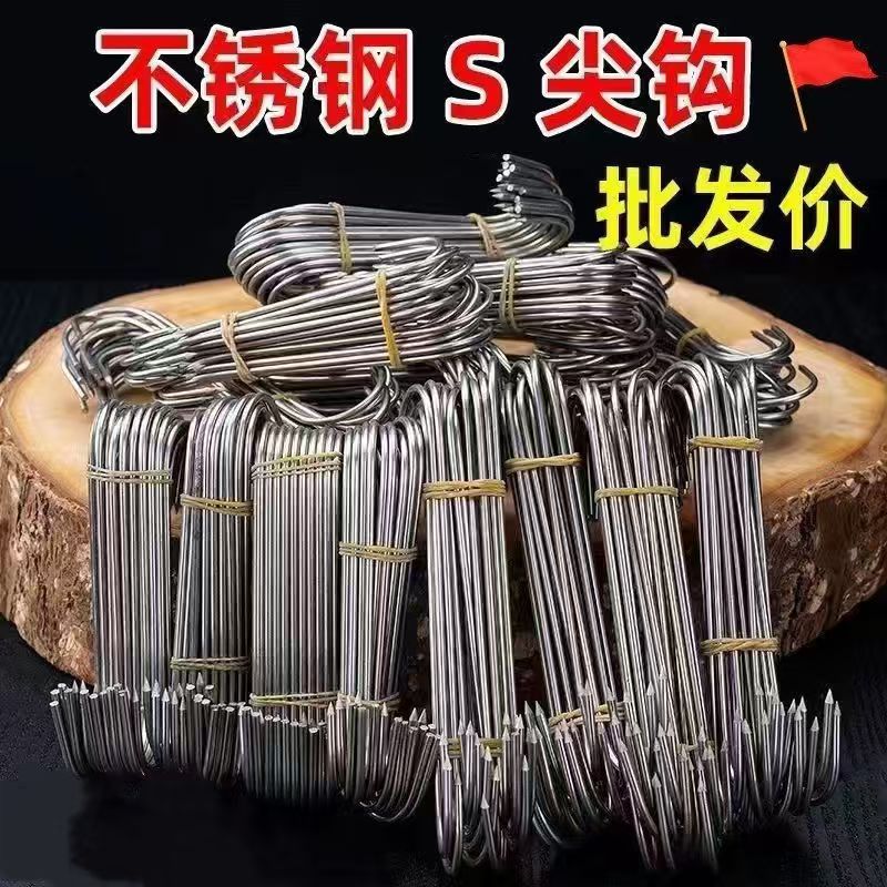 送料無料、S字型肉吊りフック、ステンレス製大型、頑丈な豚肉用尖頭フック、耐荷重性抜群