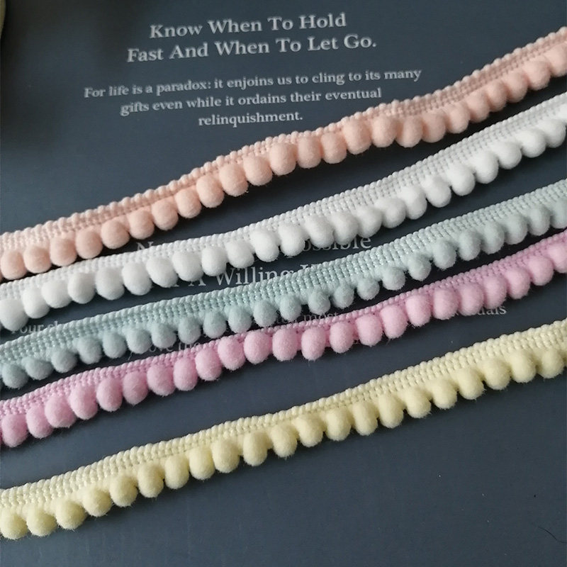 新しい色のレースの多色の毛玉の縁の小さいフランネルのカーテンの枕元の抱き枕の野菜のかごのスカートの服装の装飾の補助材料