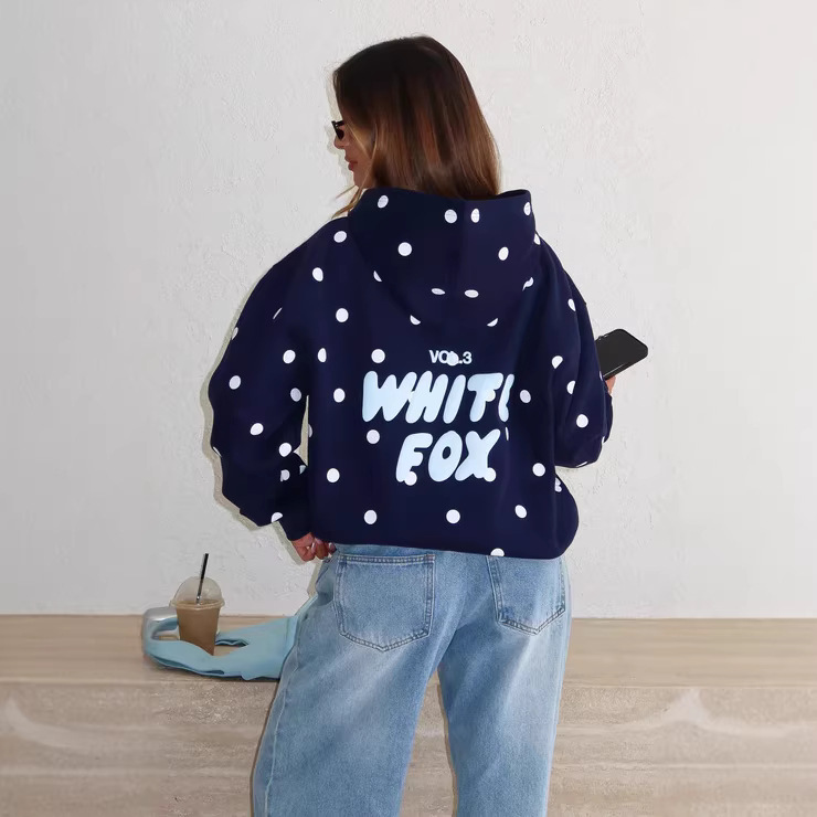 跨境独立站220g秋冬女式潮流卫衣休闲WHITEFOX字母数码印花连帽衫