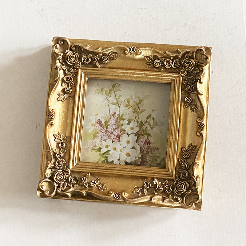 Ins風金色ヨーロッパ式レリーフ樹脂小フォトフレーム空枠彫刻手帳素材装飾材料写真