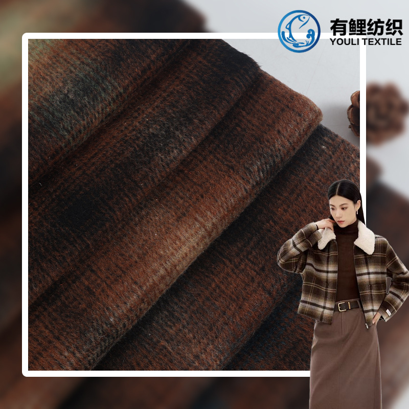 450g片面粗紡織格子コート生地秋冬コート毛格子コート生地現物ラシャ