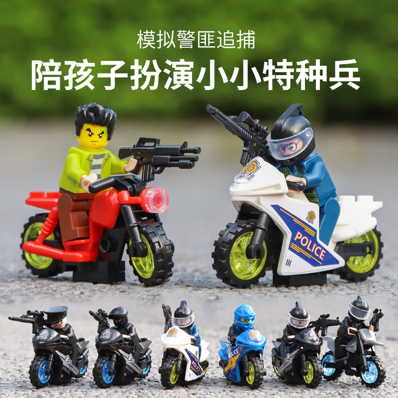 兼容乐高小颗粒公仔人仔积木玩具军事反恐特警越野车拼装警察积木