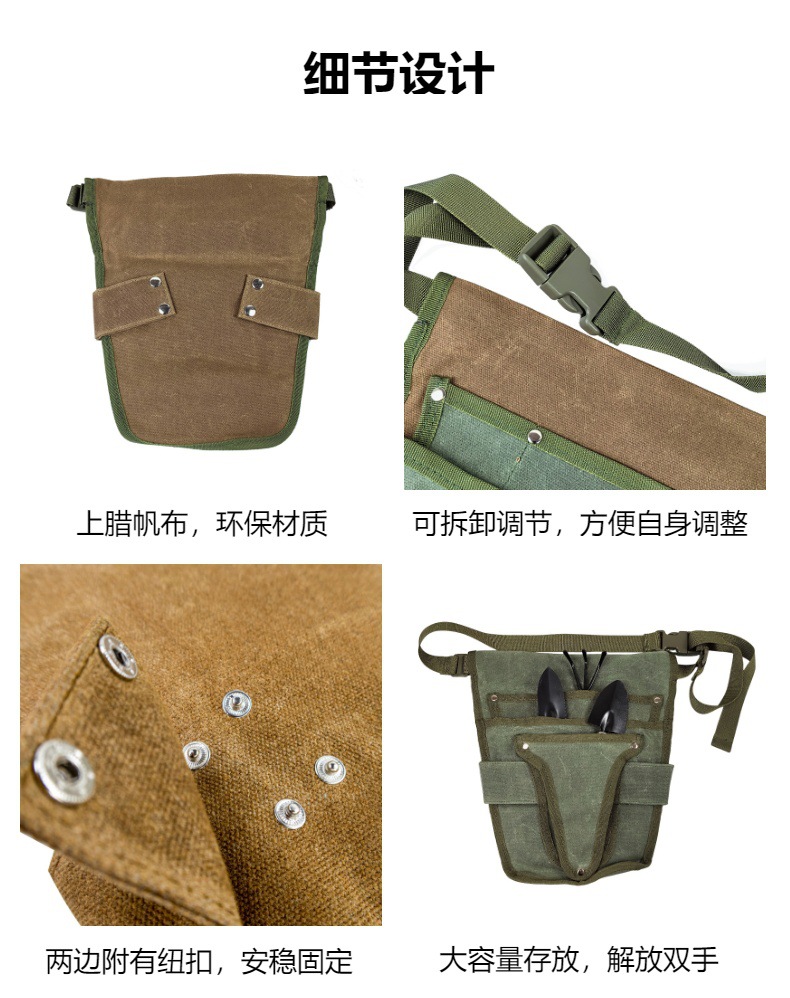 現物はワックスキャンバスの草取りキットです。携帯防水耐磨耗収納バッグは腰にかけて、園芸道具のウエストバッグを卸売りします。