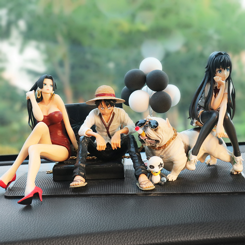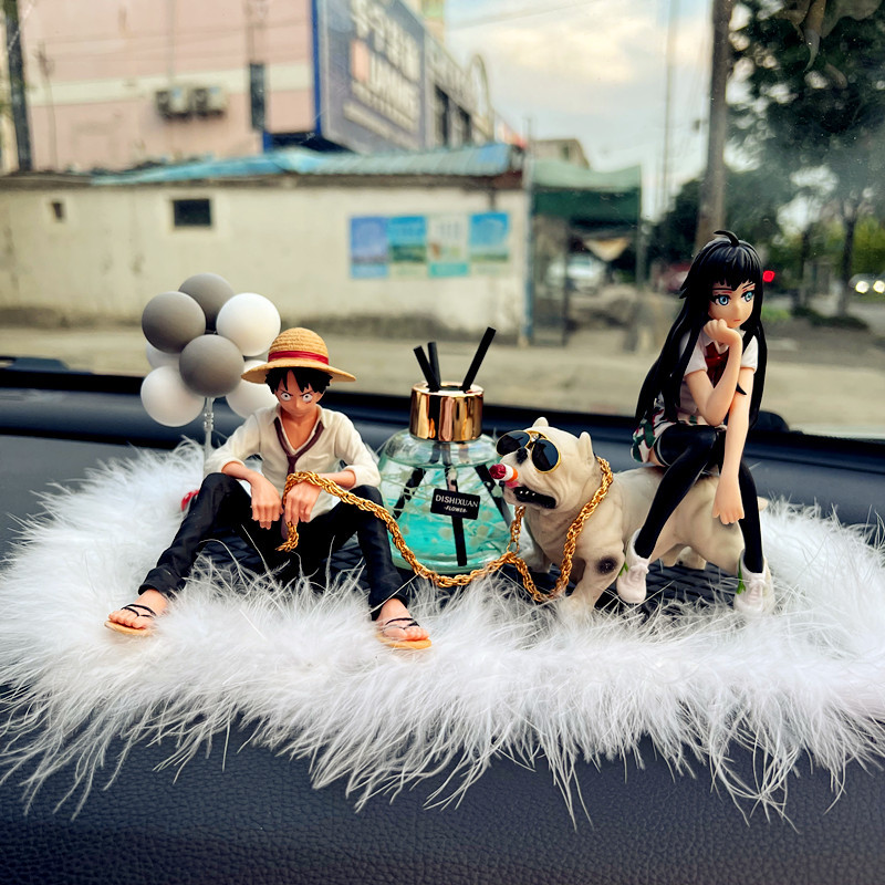 車の置物ルフィ車載アクセサリー美少女車内装飾置物ボス犬車の中控台手作り男