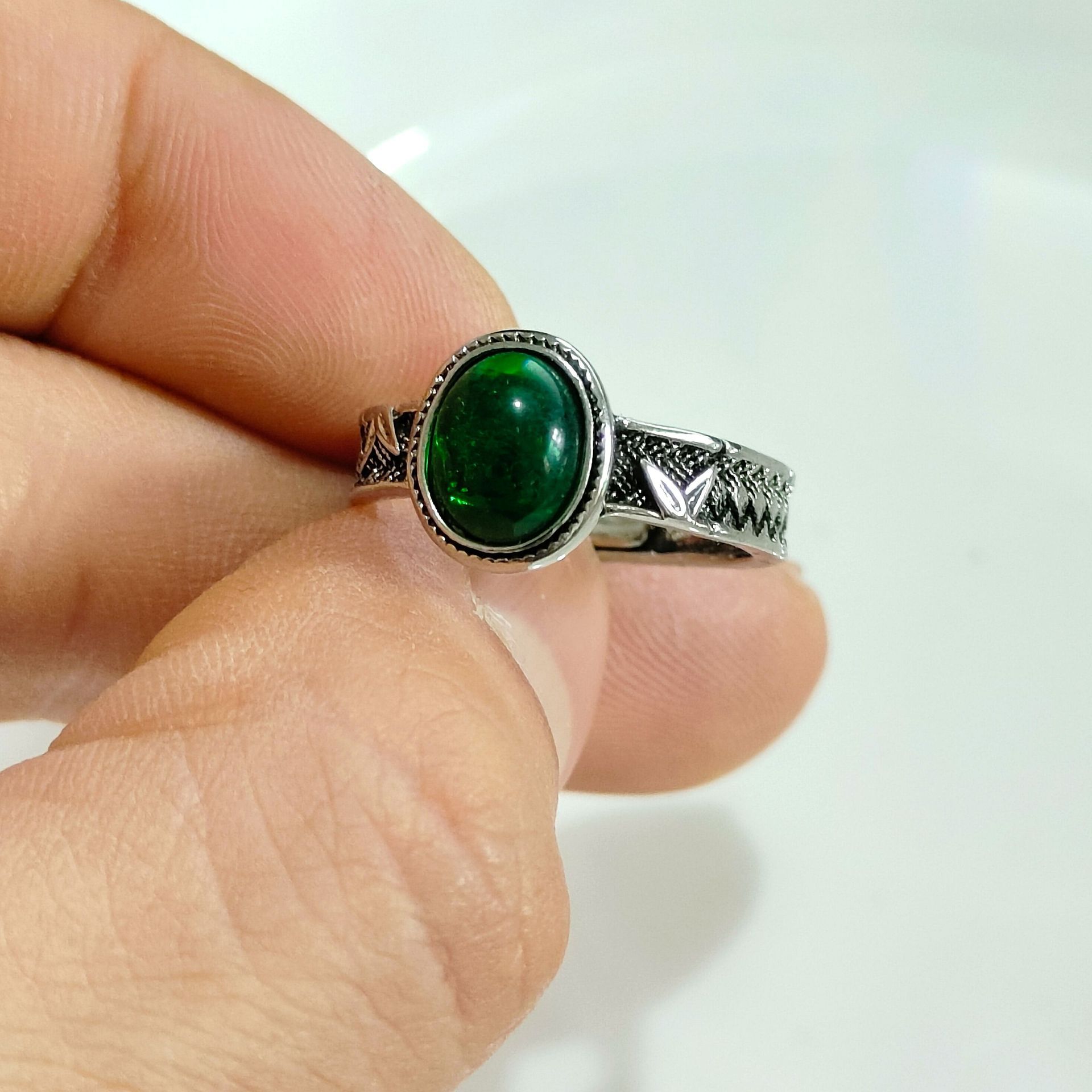 高級模造砂金リング 男女兼用 砂金に緑翡翠をあしらったグリーンリング 若者向け指輪 サイズ調整可能