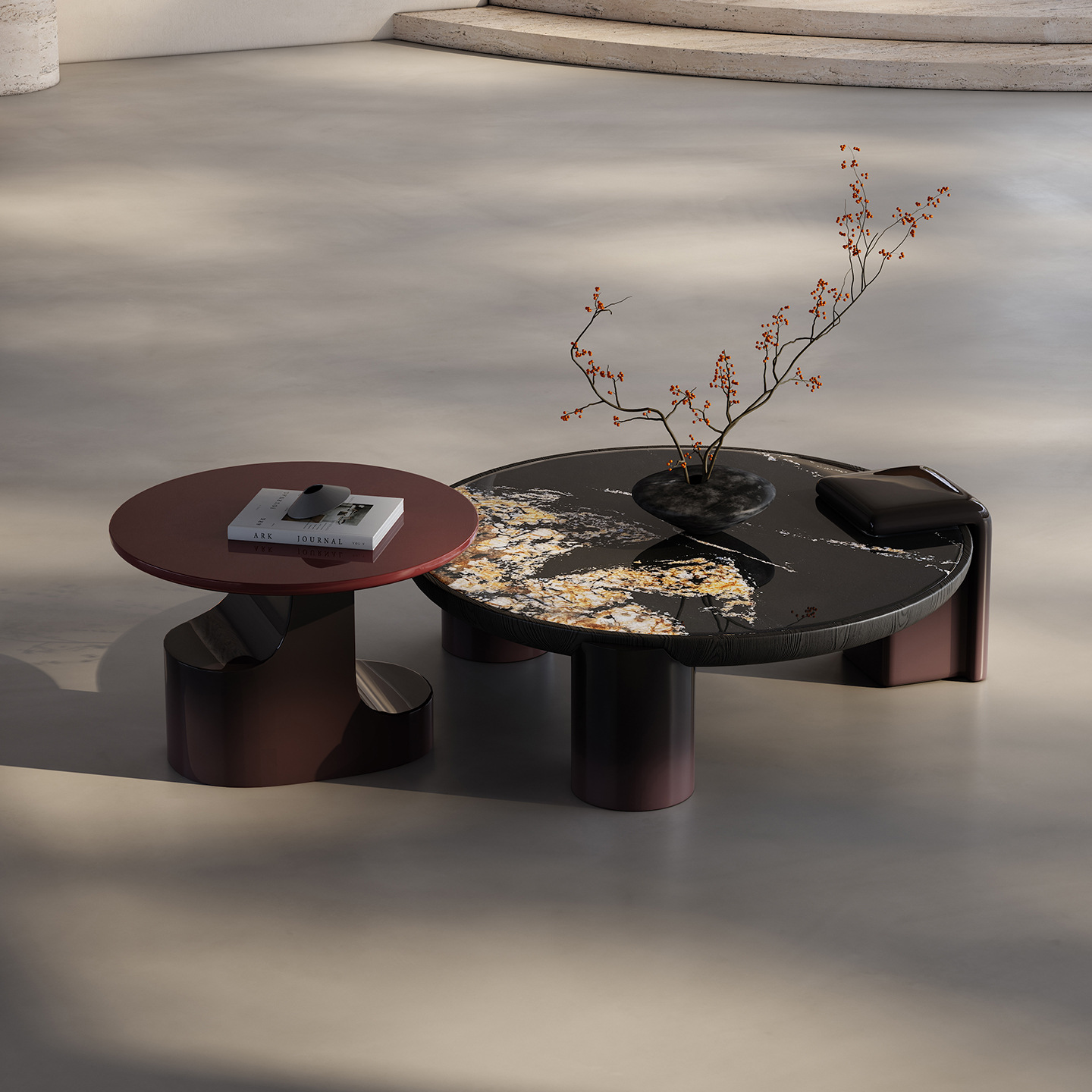 意式极简岩板茶几客厅家用2025新款高级感艺术圆形渐变烤漆茶几