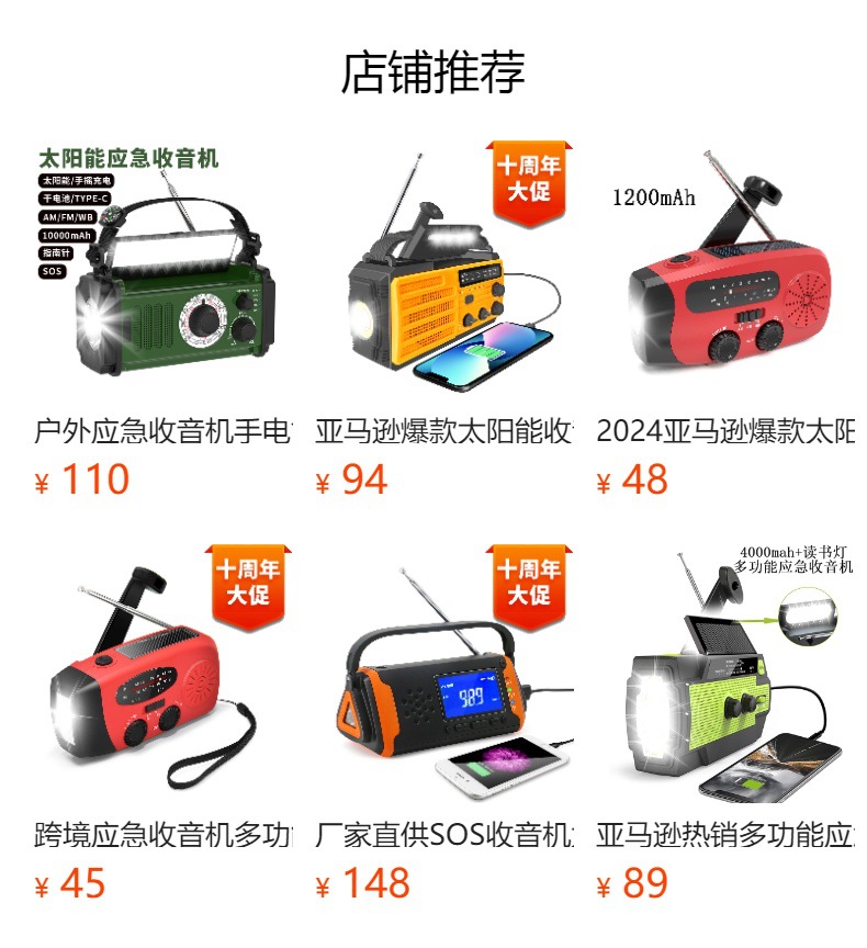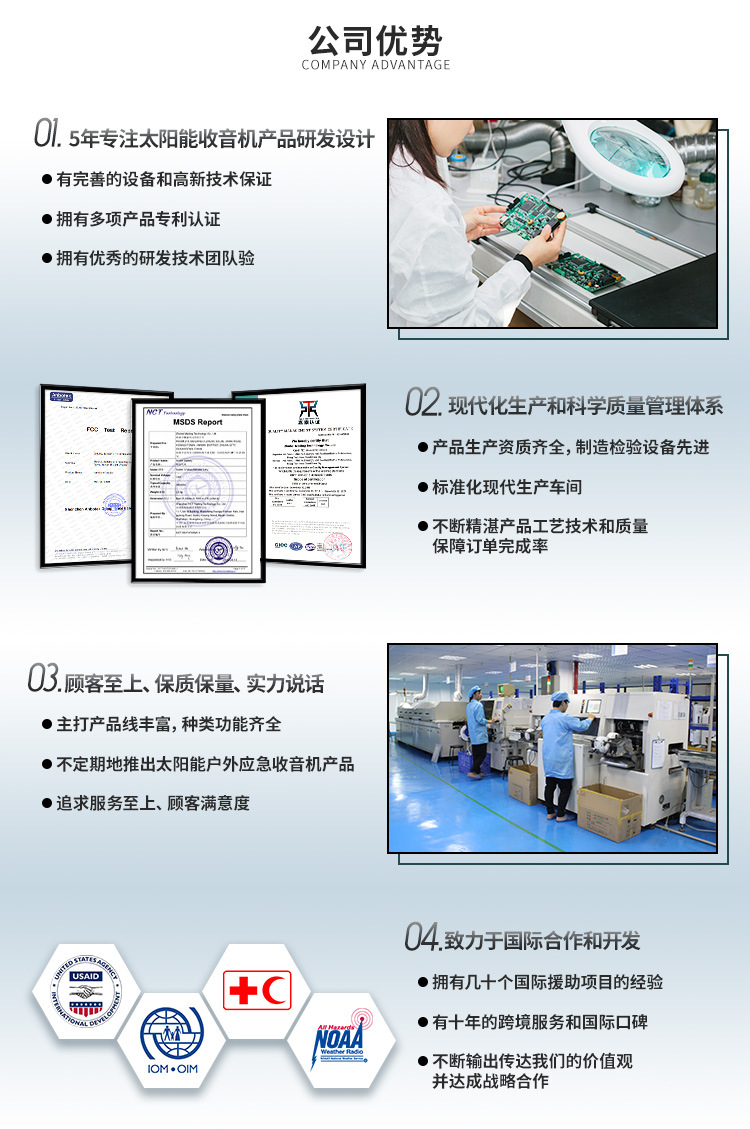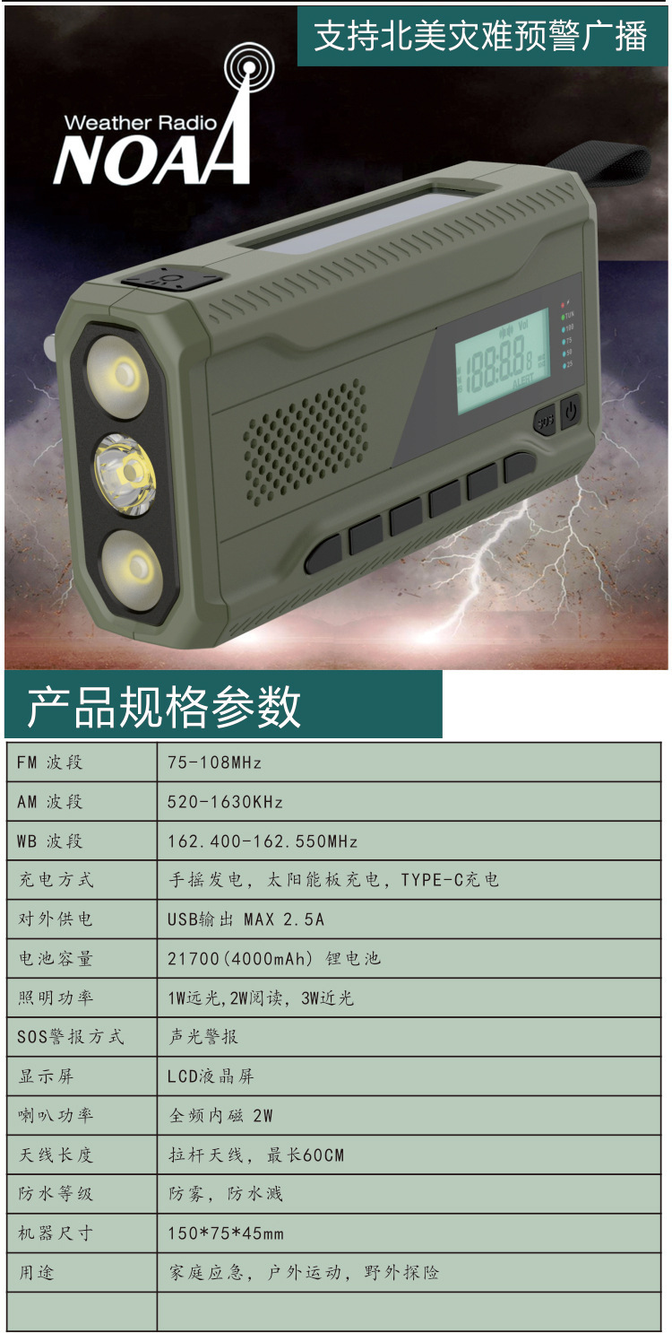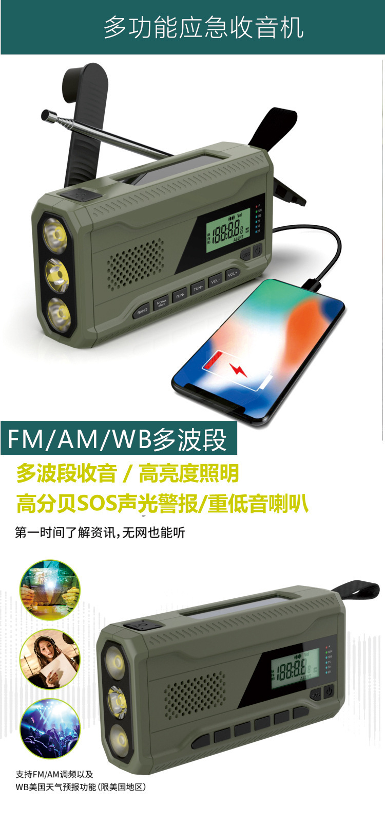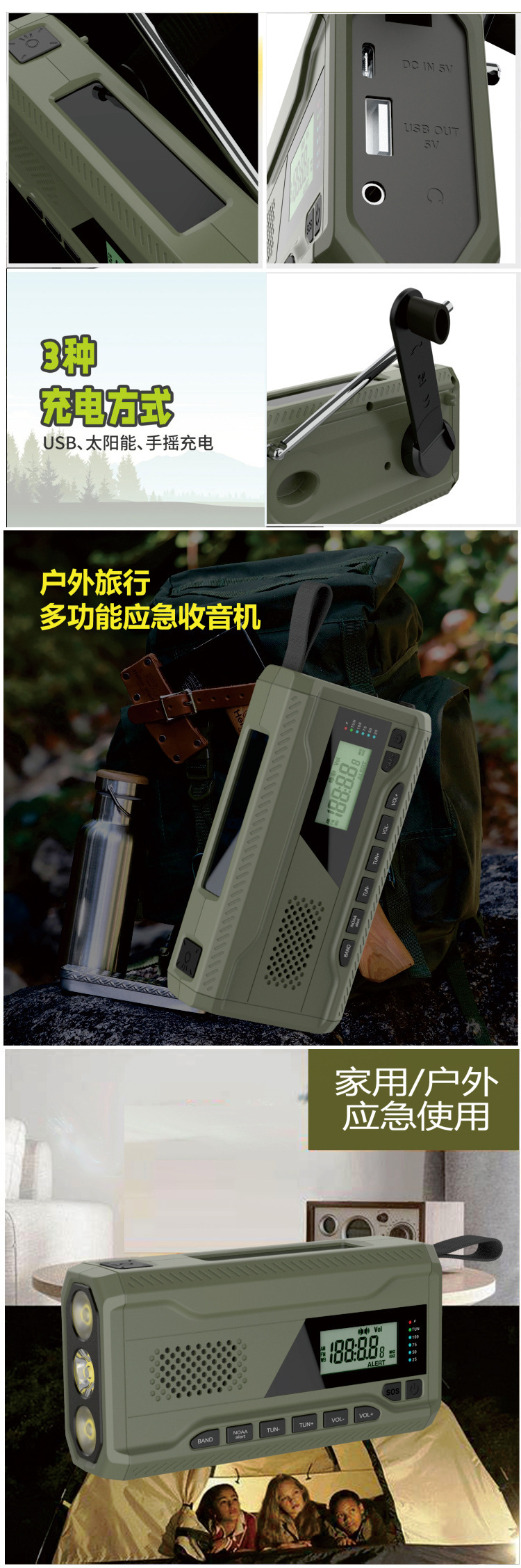 1.充电方式:手摇充电/ USB充电能供电/4500mAh电池供电/太阳能